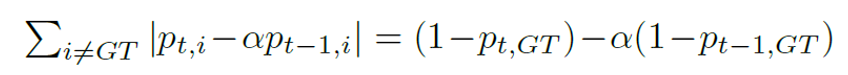 softmax 식을 사용하였음으로, gt가 아닌 모든 i의 절대값들을 모두 더하면, GT의 gradient라는 것을 알 수 있습니다.