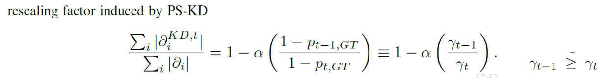 즉, 기존 KD의 gradien를 CE의 gradien로 나누어서, PS-KD의 rescaling factor를 구할 수 있습니다.