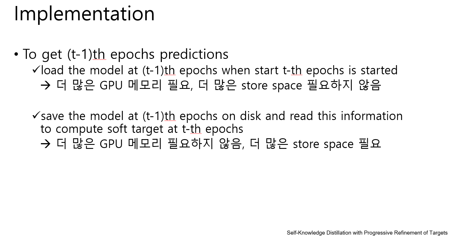 이전 에폭의 prediction 결과가 학습에 필요한 PS-KD는 두가지 방법으로 구현될 수 있습니다.
