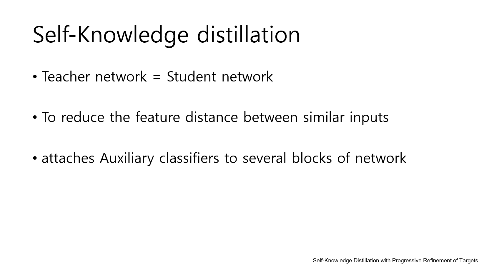 self-knowledge distillation이란 teacher network와 student network가 동일한 네트워크 인것을 말합니다.