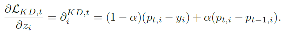 맨 위의 수식는 기존 연구된 기법으로서, Soft softmax를 사용한 KD loss입니다.