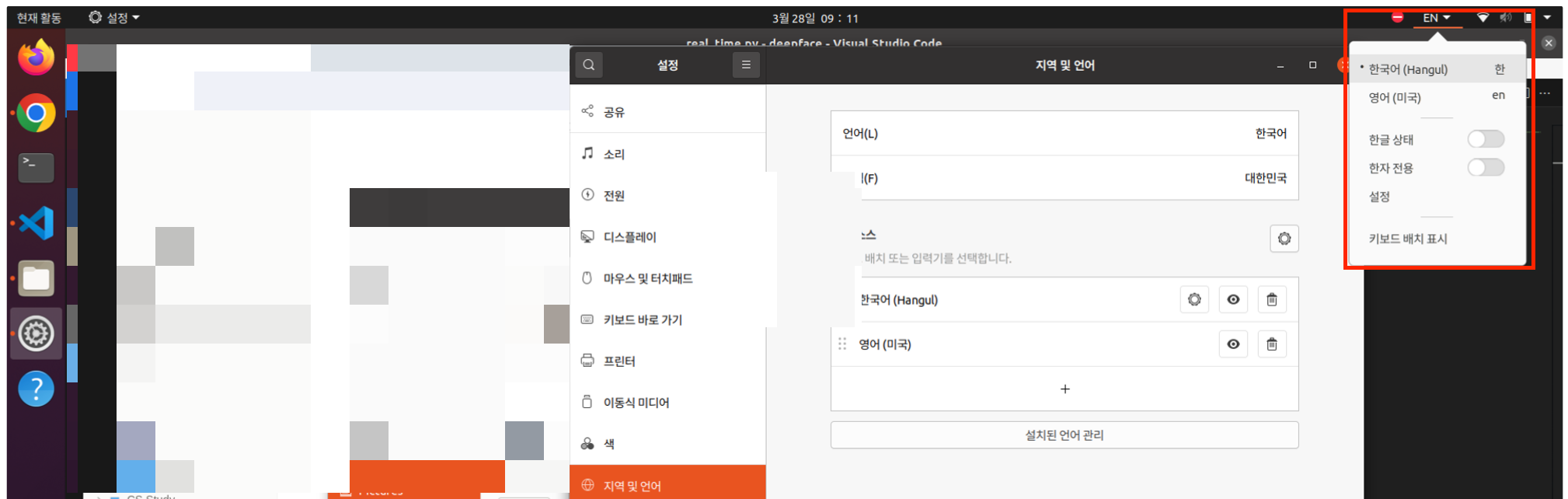 정정선선 2024. 3. 30. 22:31처음 리눅스 설치 후, 윈도우와 같이 한/영키 이용해 한글을 입력하기 위해 설정에 대한 설명