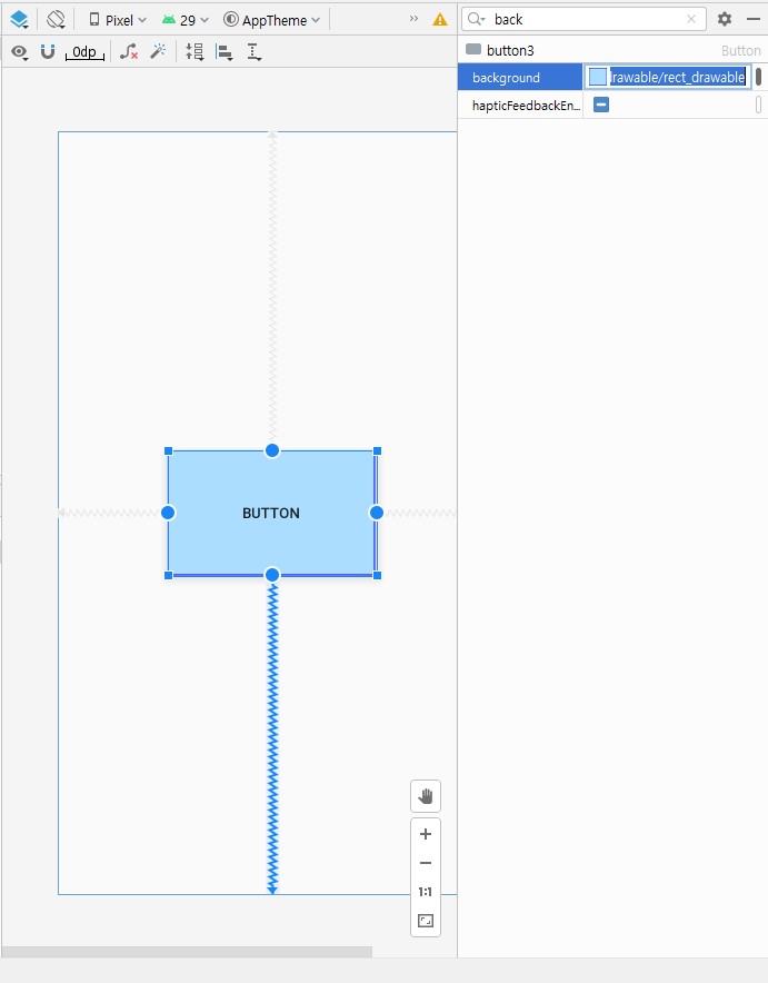 버튼을 추가하고 버튼의 backgorund 속성에 @drawable/rect_drawable를 입력해주자.