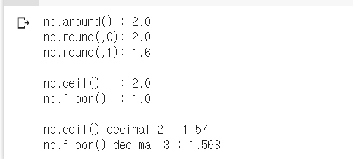 print("np.ceil() :" ,np.ceil(x)) # np.ceil(x) 소수점 자리 올림