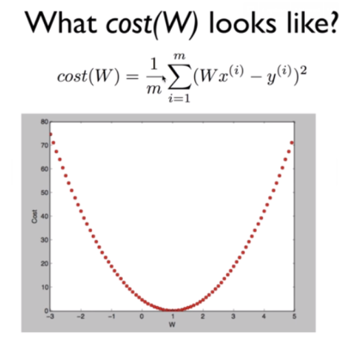 각 W의 값이 다를 때 마다 Cost 값이 다르게 나온다.