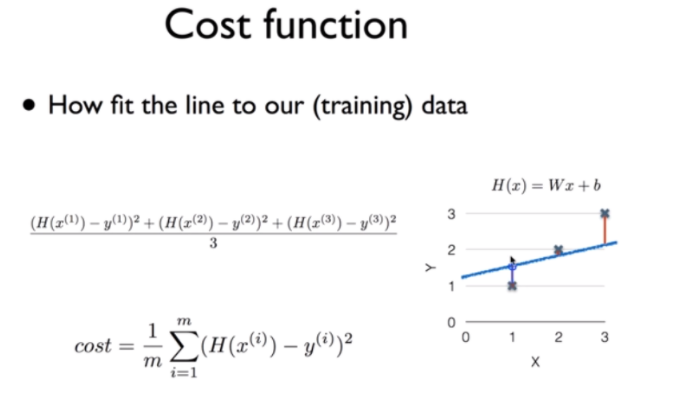 H(x) = Wx+b에서 정답에 제일 부합하는 W & b를 찾는 것이 목표
