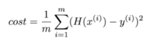 정해진 H(x) = Wx+b의 식에서 값들에 대한 Cost(Loss)를 계산하는 식