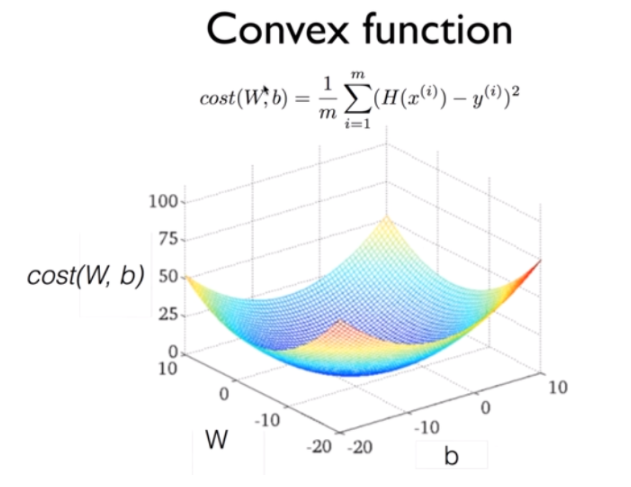 항상 Cost Function을 설계할때 반드시 아래 사진과 같이 Convex function의 모양이 되는지 확인해야한다.