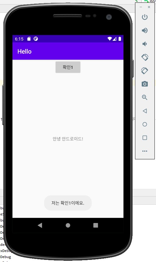 Toast.makeText(this, "저는 확인1이에요.", Toast.LENGTH_LONG).show(); // Toast는 간단한 메세지를 잠깐 보여주는 역할을 수행한다.